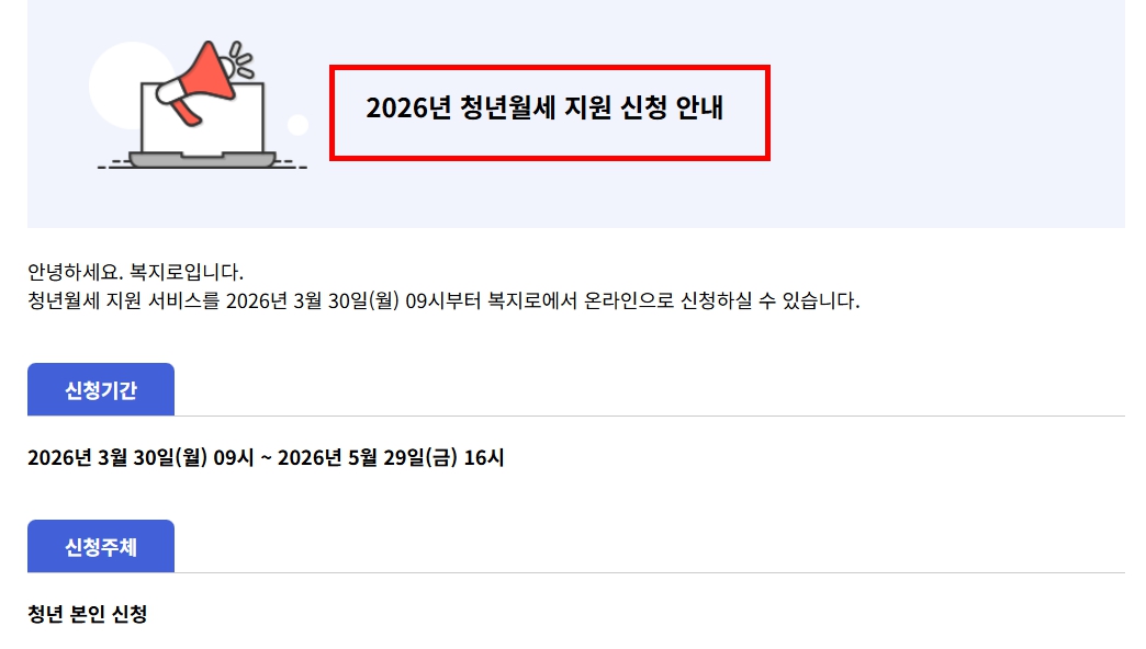📌 2026년 청년 월세 지원 최신 공고 내용