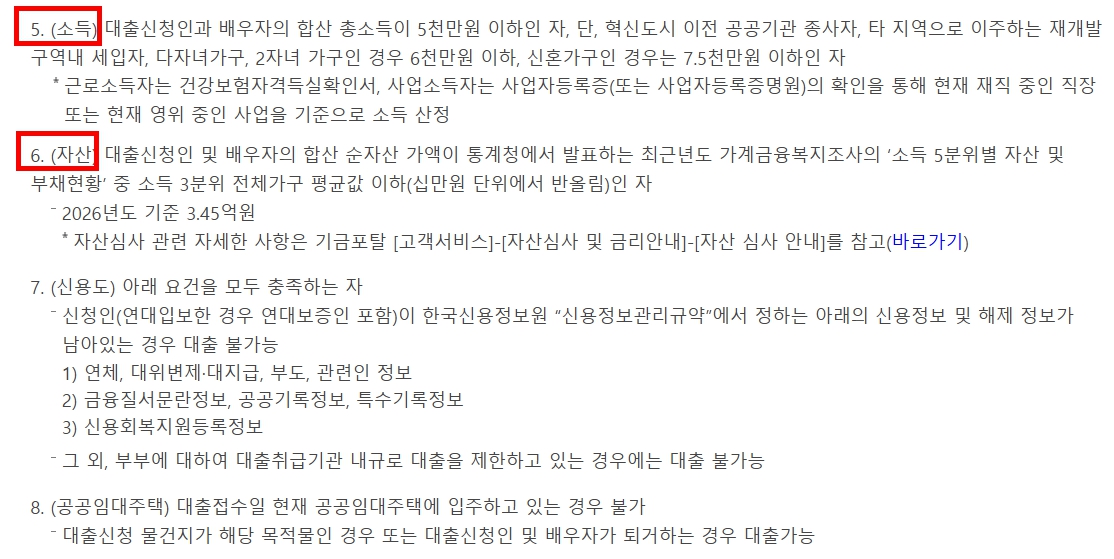 - 소득 기준 초과 시 대출 제한